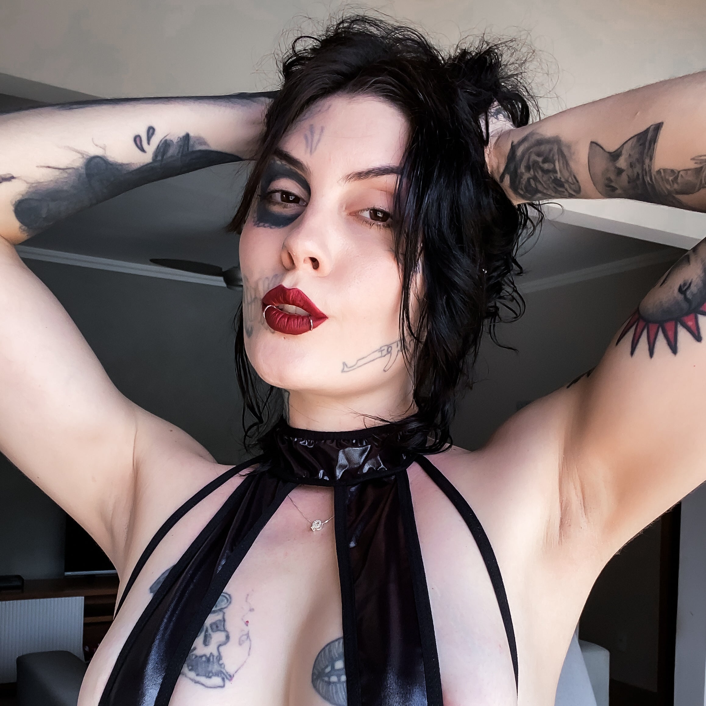 Punk, tatuada, natural , peludinha e piercing nos mamilos